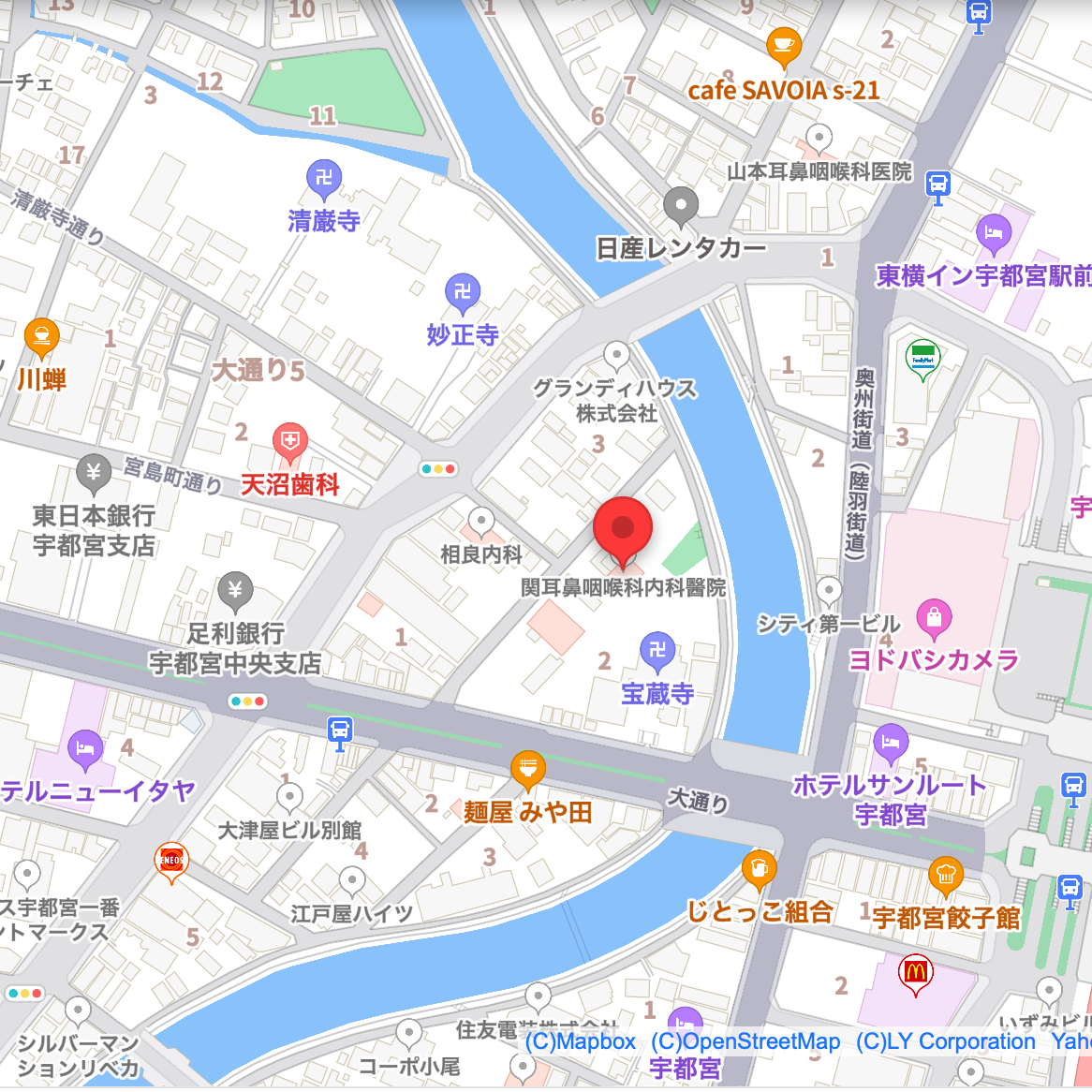 関耳鼻咽喉科内科醫院 栃木県宇都宮市大通り4-2-25 tel.028-621-8061